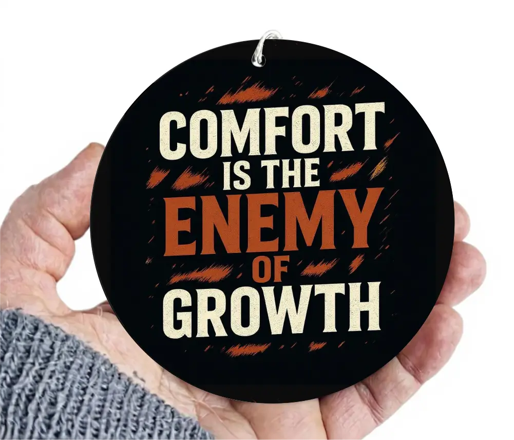 Elevate your drive and your mindset with our “Comfort is the Enemy of Growth” car mirror hanging accessory. This stylish motivational quote serves as a daily reminder to embrace challenges and push boundaries, whether you’re commuting, road-tripping, or chasing your dreams.